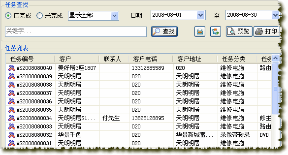 任务计划为管理您要将要处理的事情或已经处理过的事情,可以打印多种单据,如:小票、收据、银行进帐单、支票、维修服务单等。
